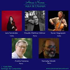 Actividades del Curso Airas Nunes, entre labores docentes y conciertos de alumnos que abarcará desde el día 1 al día 6 del presente mes, y en el que se mantiene la relación de cuadro de profesores en mayor medida con respecto a otras convocatorias con el añadido de las charlas de divulgación en el Auditorio de la EAEM, de las que serán protagonistas María Valverde y Penélope Aboli que se anuncian para el lunes y el martes- 18´30 h-, una novedad en este estimulante proyecto que suele ofrecerse a comienzos del período estival. La idea conserva la confraternización entre profesores y alumnos, procedentes de 13 países distintos desde Europa a los Estados Unidos o Japón, fomentando preferentemente las atenciones a los géneros cameristicos, a tenor de las posibilidades de recursos y la limitación de fechas, un intercambio de pareceres y experiencias en un permanente beneficio de confluencias, aspecto del que guardamos referencia y desde la primera convocatoria, nacida en su momento casi como una azarosa aventura por iniciativa de profesionales de la música, entonces recurriendo a las colaboraciones continuadas con la USC, a través del Paraninfo; La Escola de Altos Estudos Musicais, La Escola Berenguela o el Centro Galego de Arte Contemporáneo.
